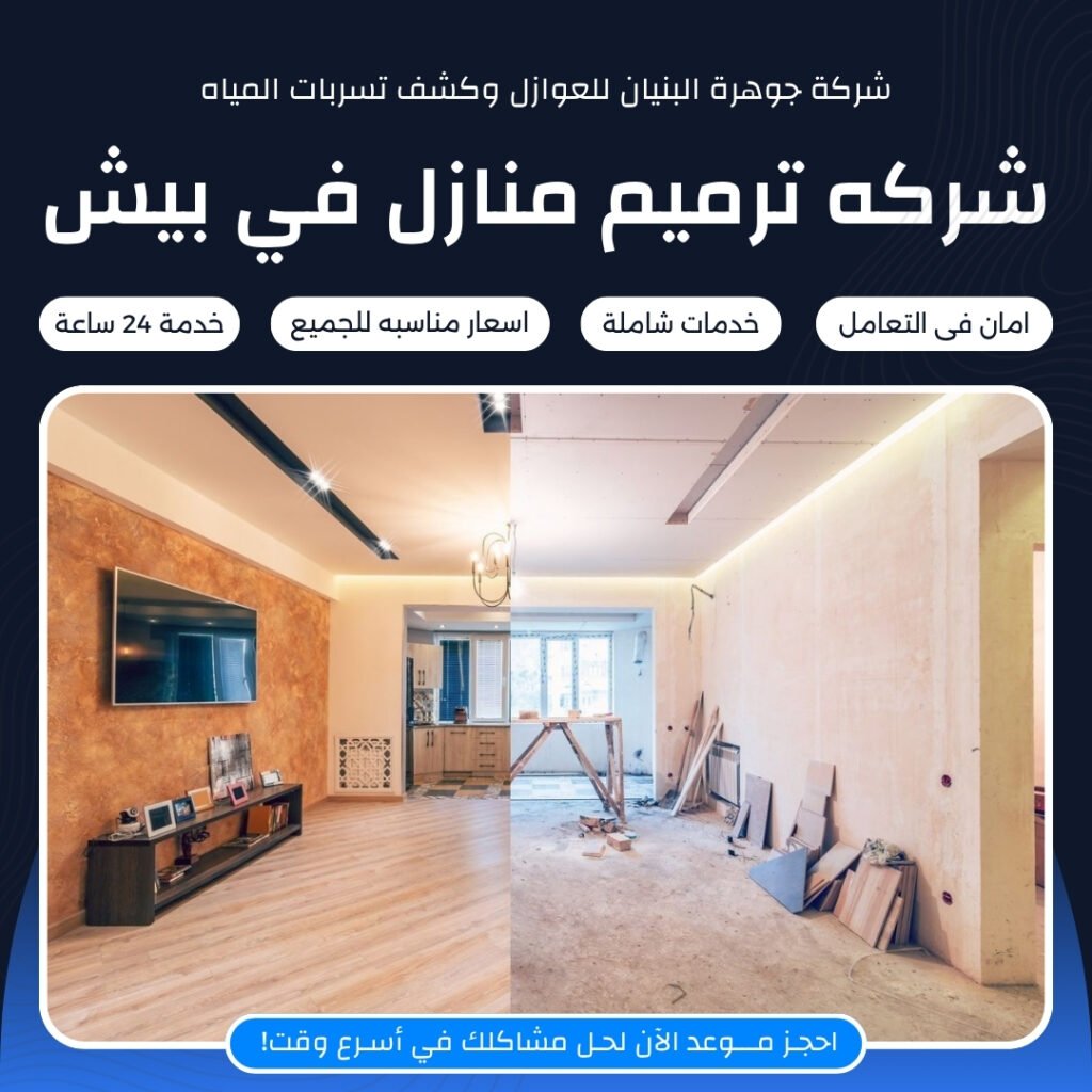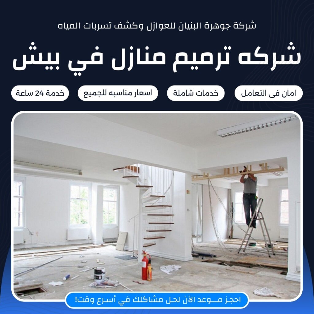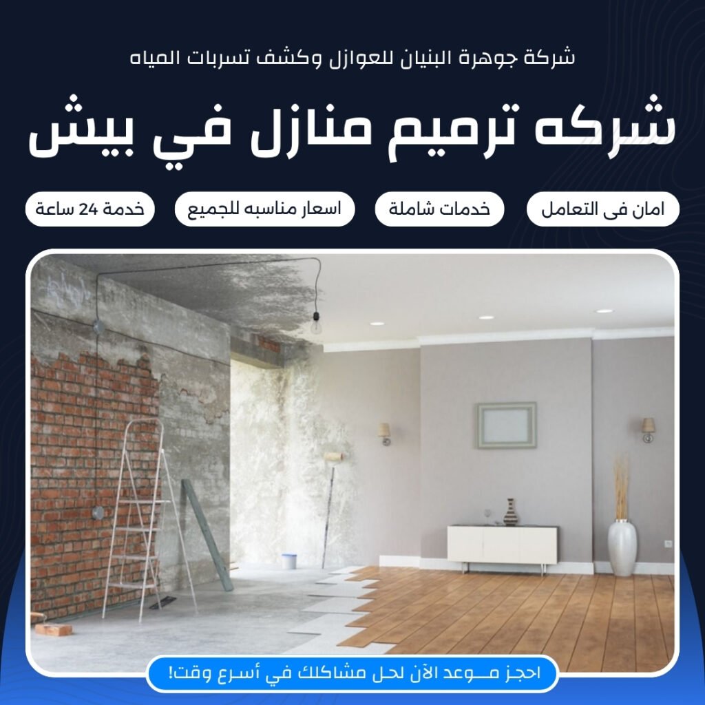 تعتبر شركه ترميم منازل في بيش الخيار الأمثل لضمان تجديد المنازل والفلل بكفاءة وجودة عالية، لهذا تواصل معنا الآن في شركه جوهره البنيان للاستفادة من خدمات احترافية وأسعار تنافسية تحافظ على جمال ومتانة منزلك.